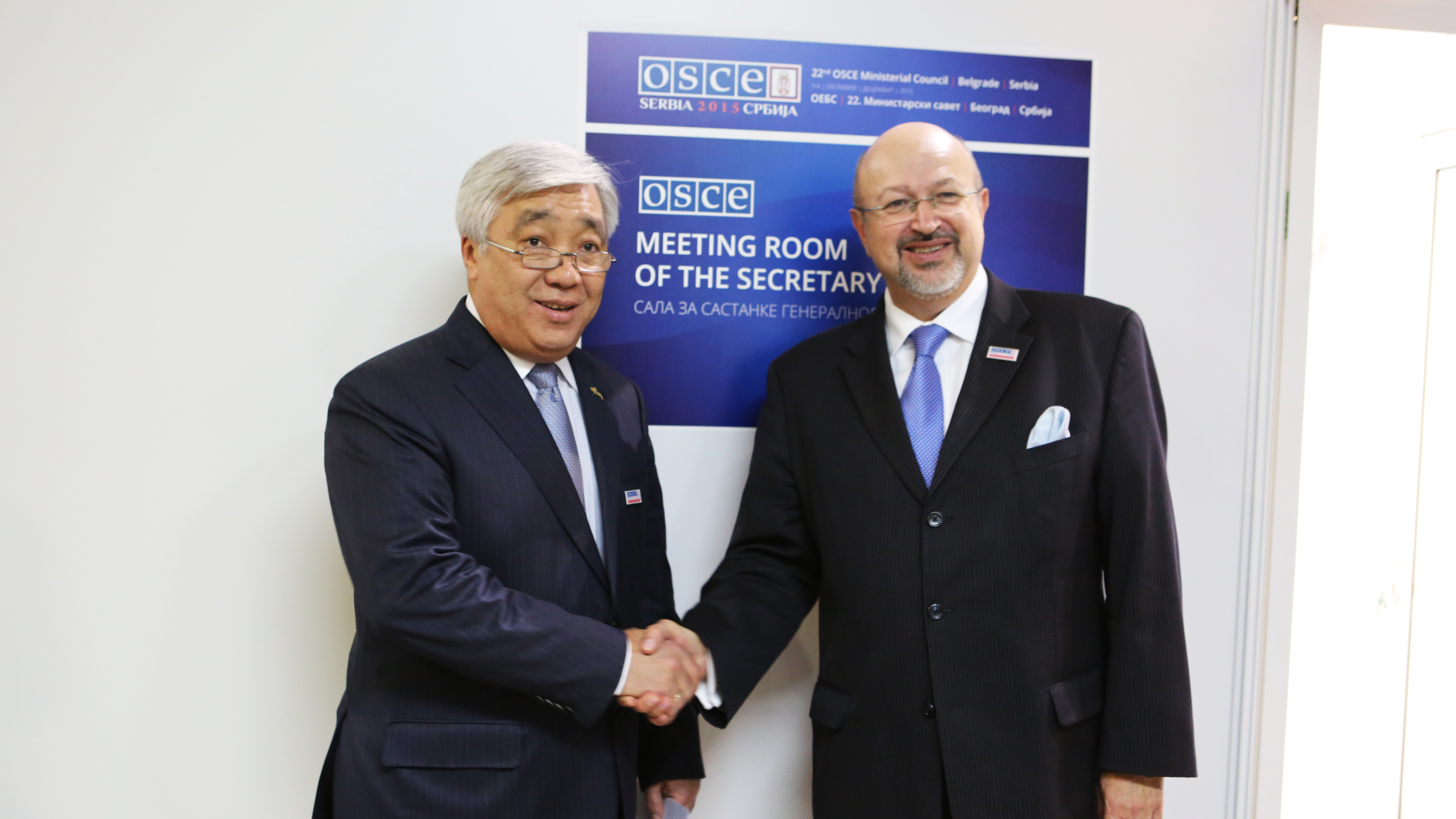 Secretary General Lamberto Zannier meeting with Erlan Idrissov, Minister of Foreign Affairs of the Republic of Kazakhstan, Belgrade, 3 December 2015.