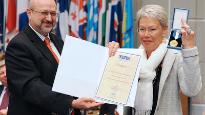 2015 OSCE Medal awarded to Ambassador Heidi Tagliavini and former OSCE Senior Operational Adviser John Crosby