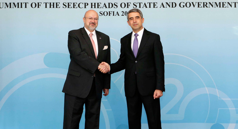 OSCE Secretary General Zannier (l) alongside Bulgaria's President Rosen Plevneliev (r) at the South East Europe Co-operation Process Summit, Sofia, 1 June 2016.