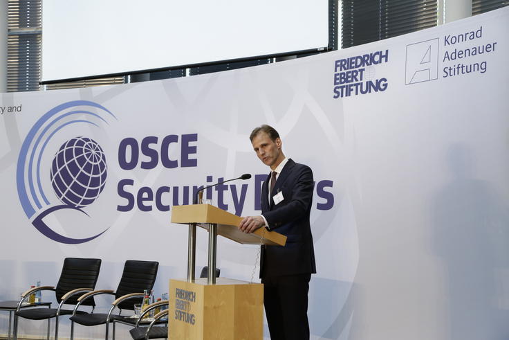 Paul Bekkers, Director of the Office of the OSCE Secretary General, introduces OSCE Secretary General, Lamberto Zannier, as the second day of Security Days begins in Berlin, 24 June 2016.