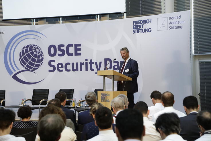 Gernot Erler, Special Representative of the Federal Government of Germany for the OSCE Chairmanship, addresses the crowd at the second day of Security Days in Berlin, 24 June 2016.