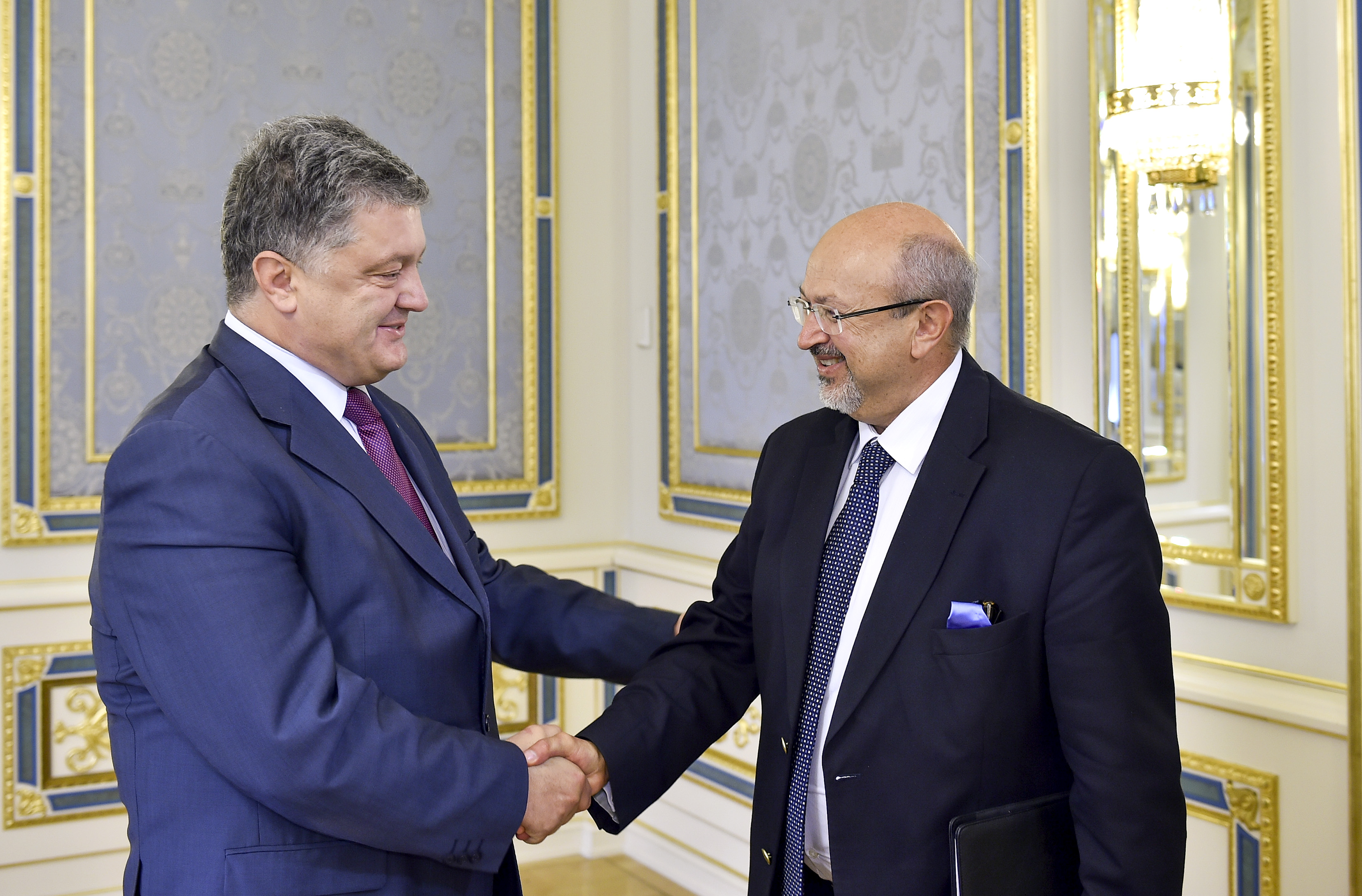 (R-l) OSCE Secretary General Lamberto Zannier meeting with Ukraine's President Petro Poroshenko, Kyiv, 9 September 2016.