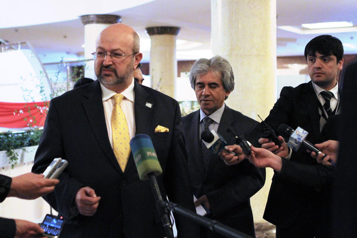 OSCE Secretary General Lamberto Zannier speaking to the media after a meeting with President of Tajikistan Emomali Rahmon, Dushanbe, 27 March 2012.