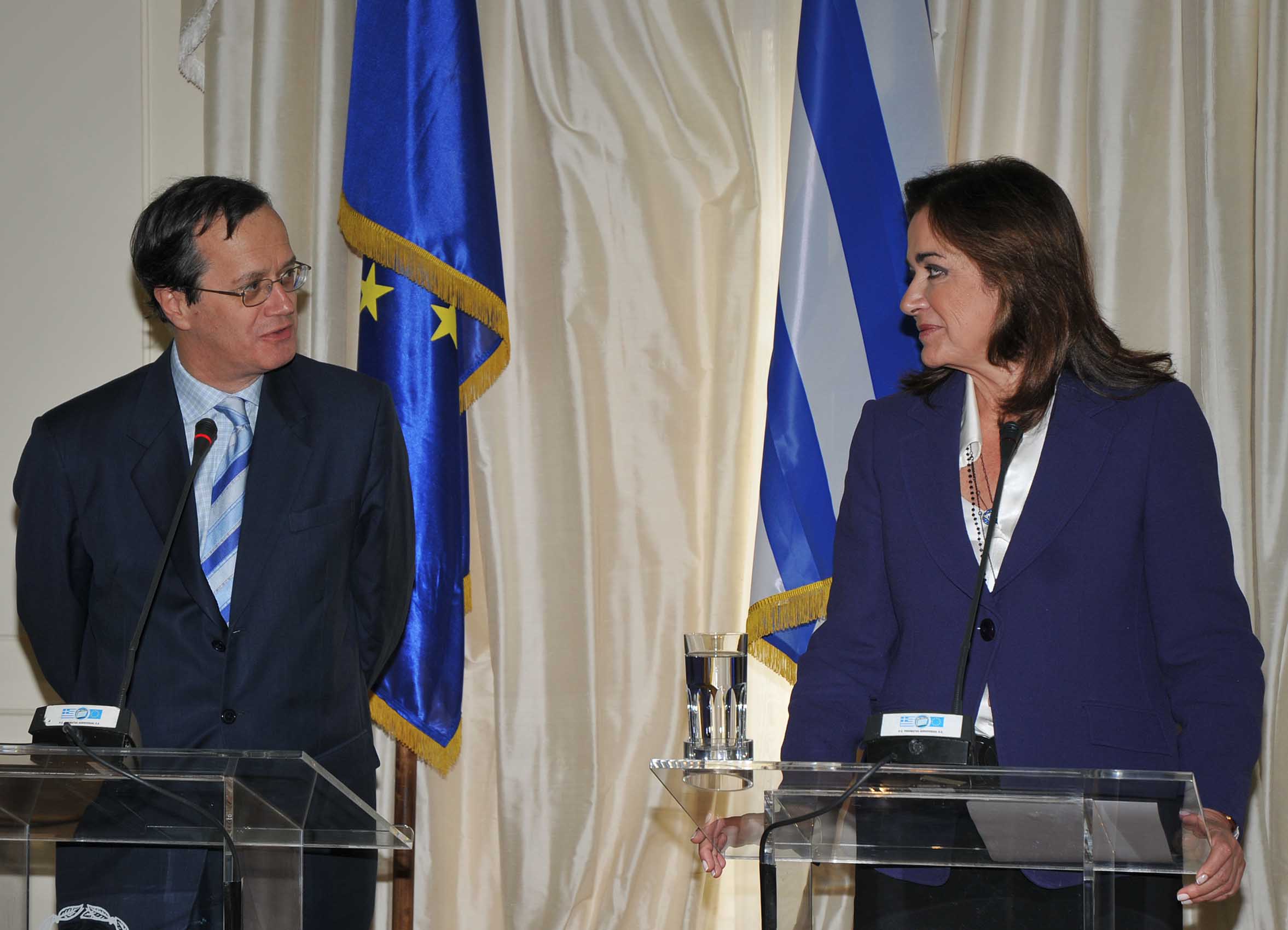 OSCE Secretary General Marc Perrin de Brichambaut (left) with the Greek Foreign Minister Dora Bakoyannis in Athens, 12 November 2008. Greece will hold the OSCE Chairmanship in 2009.