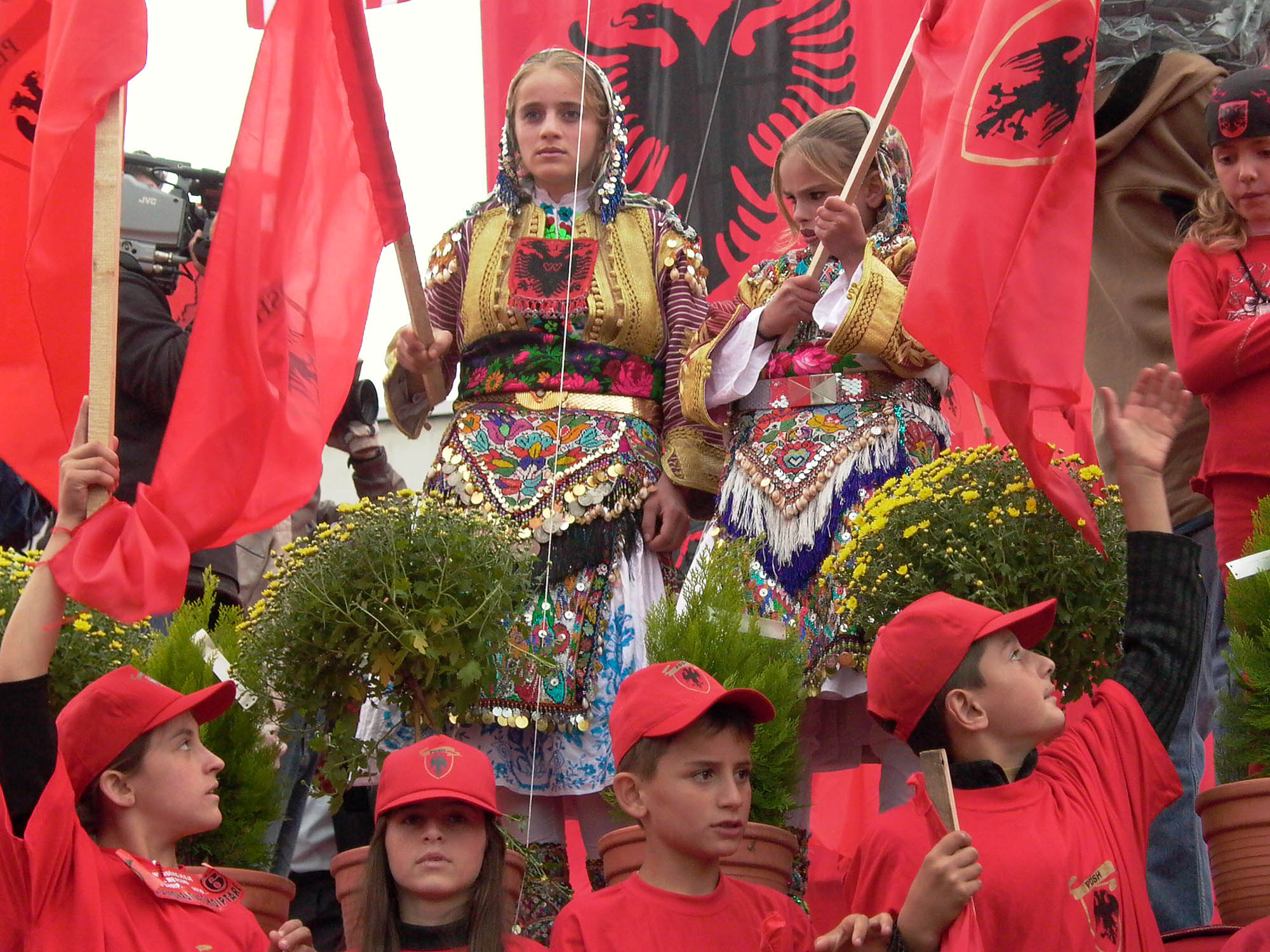 Supporters at a rally of the Albanian DPA party, 13 September in