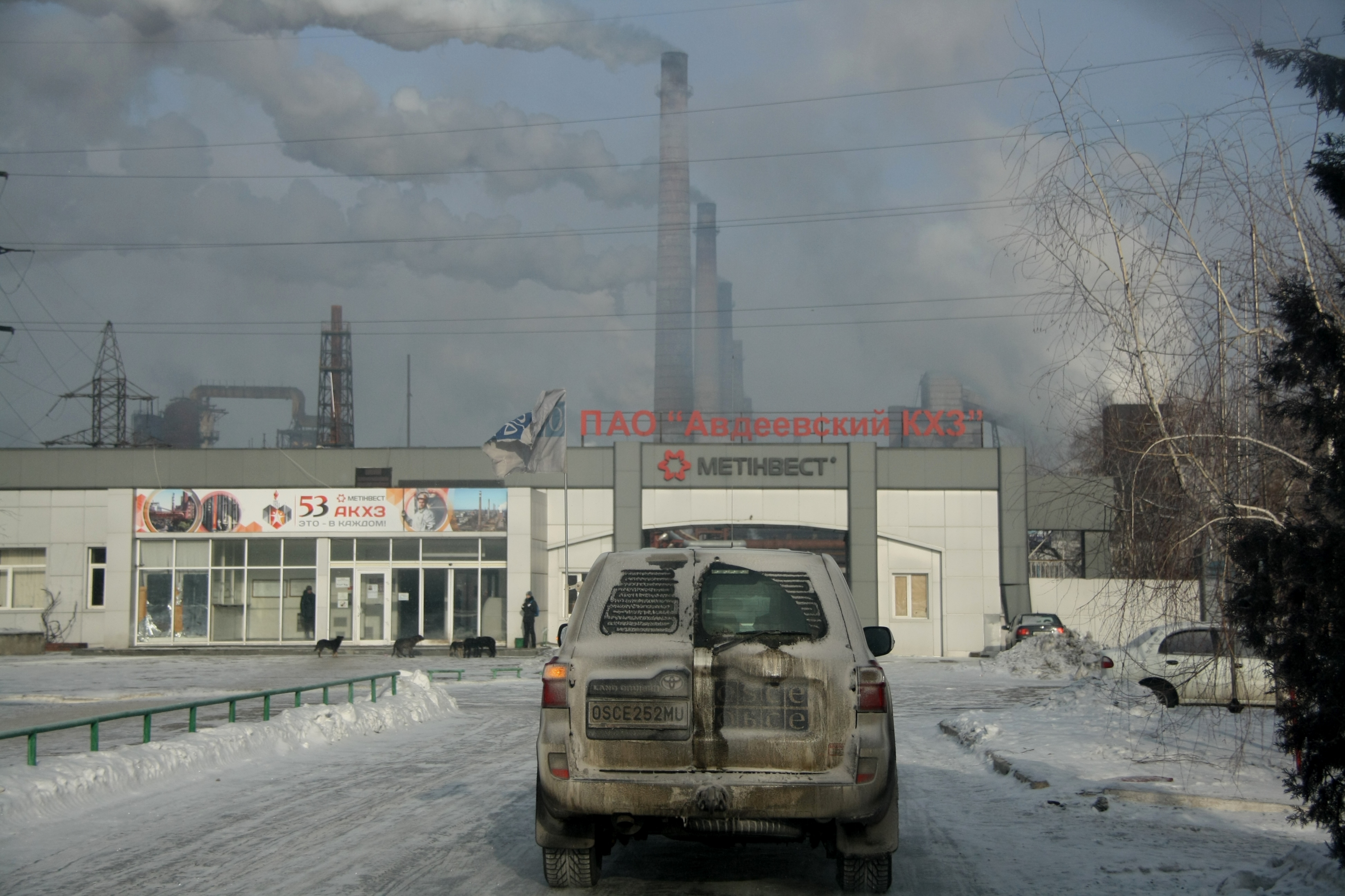 An OSCE patrol enters the grounds of the Avdiivka Coking Coal plant, the country’s largest. It also heats the entire town of 22,000, Avdiivka, Ukraine, 10 February 2017.