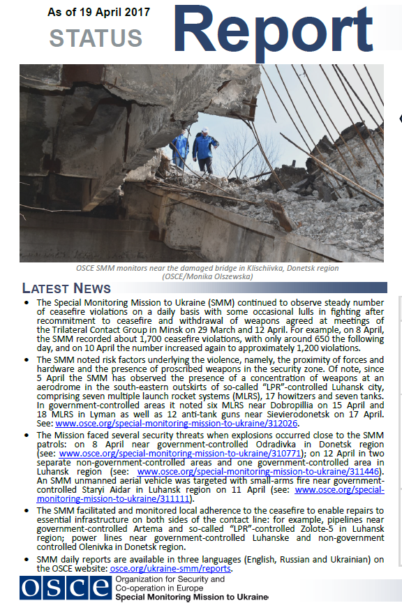 cover for Status Report as of 19 April 2017