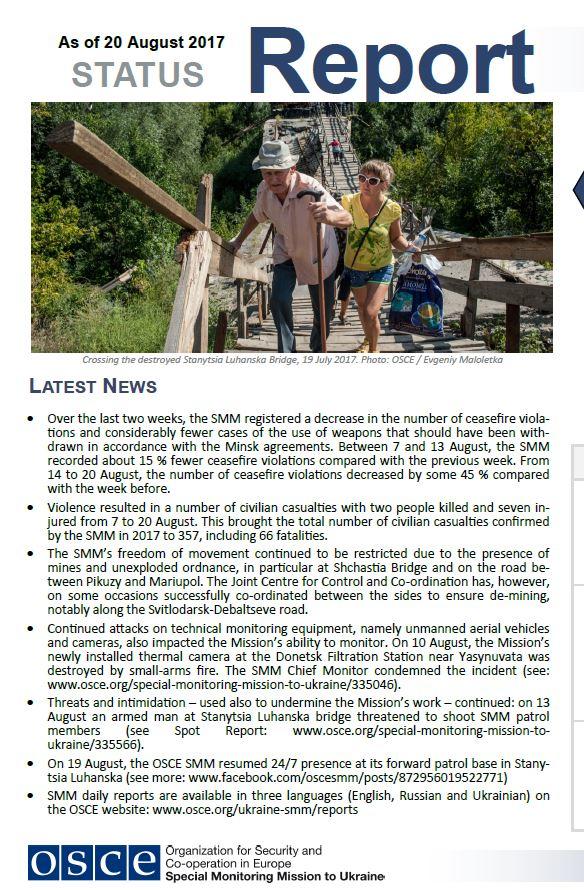 cover: Status Report as of 20 August 2017