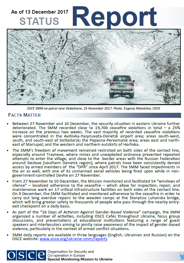 Cover for the Status Report as of 13 December 2017.