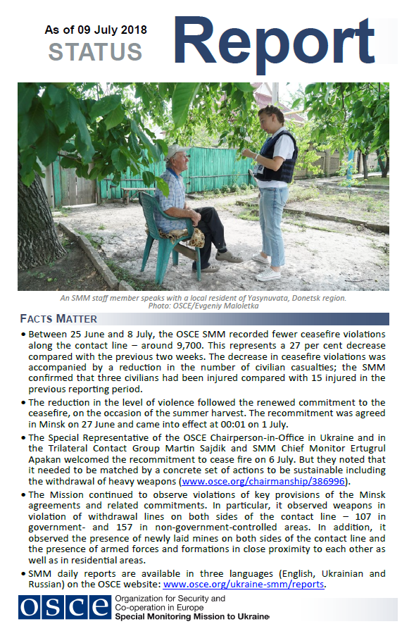 Cover for Status Report as of 9 July 2018