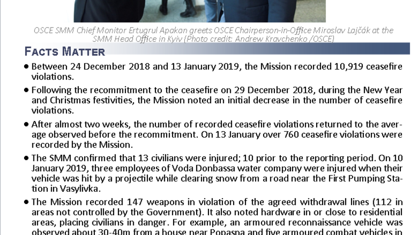 This report presents a general overview of the Special Monitoring Mission to Ukraine (SMM), its main activities and latest news as of 14 January 2019.
