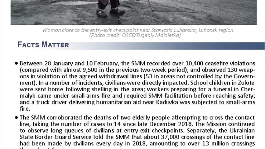 This report presents a general overview of the Special Monitoring Mission to Ukraine (SMM), its main activities and latest news as of 11 February 2019.