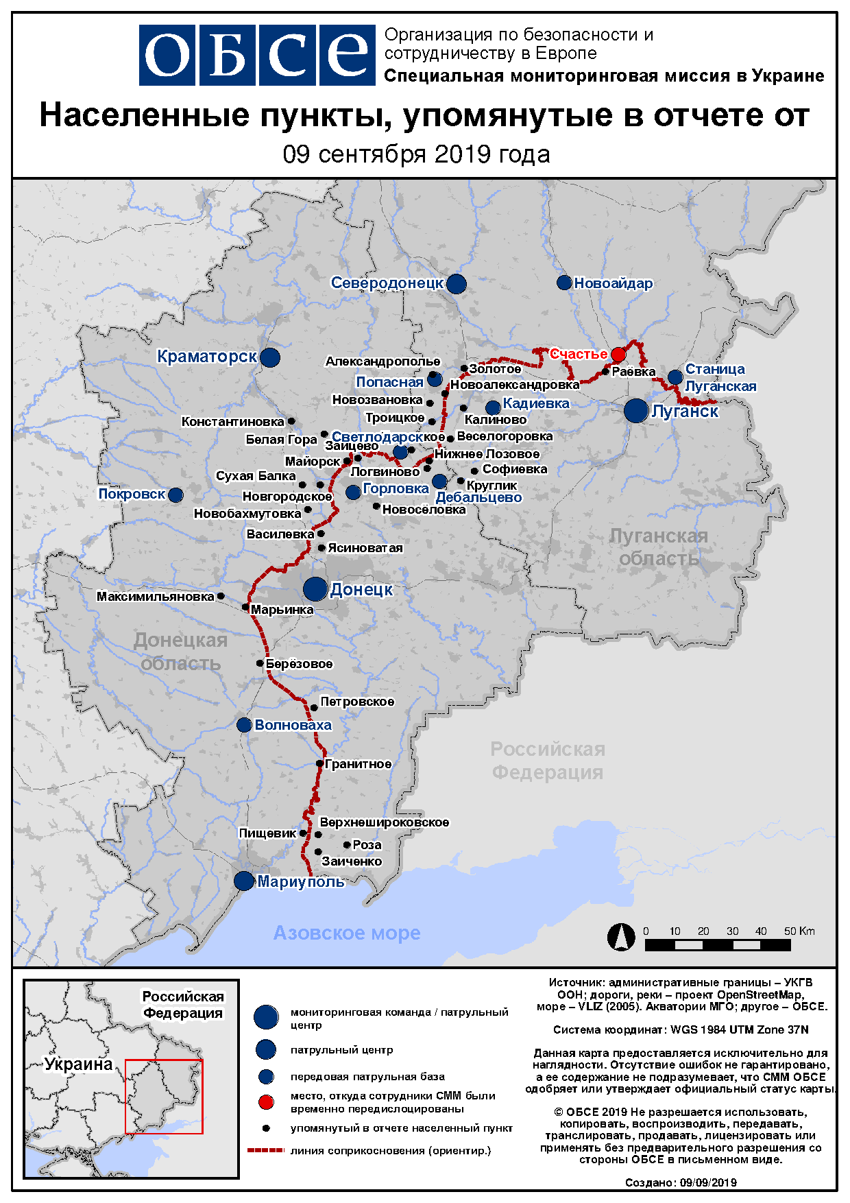 OSCE Special Monitoring Mission to Ukraine (SMM) Daily Report 213/2019 issued on 9 September 2019