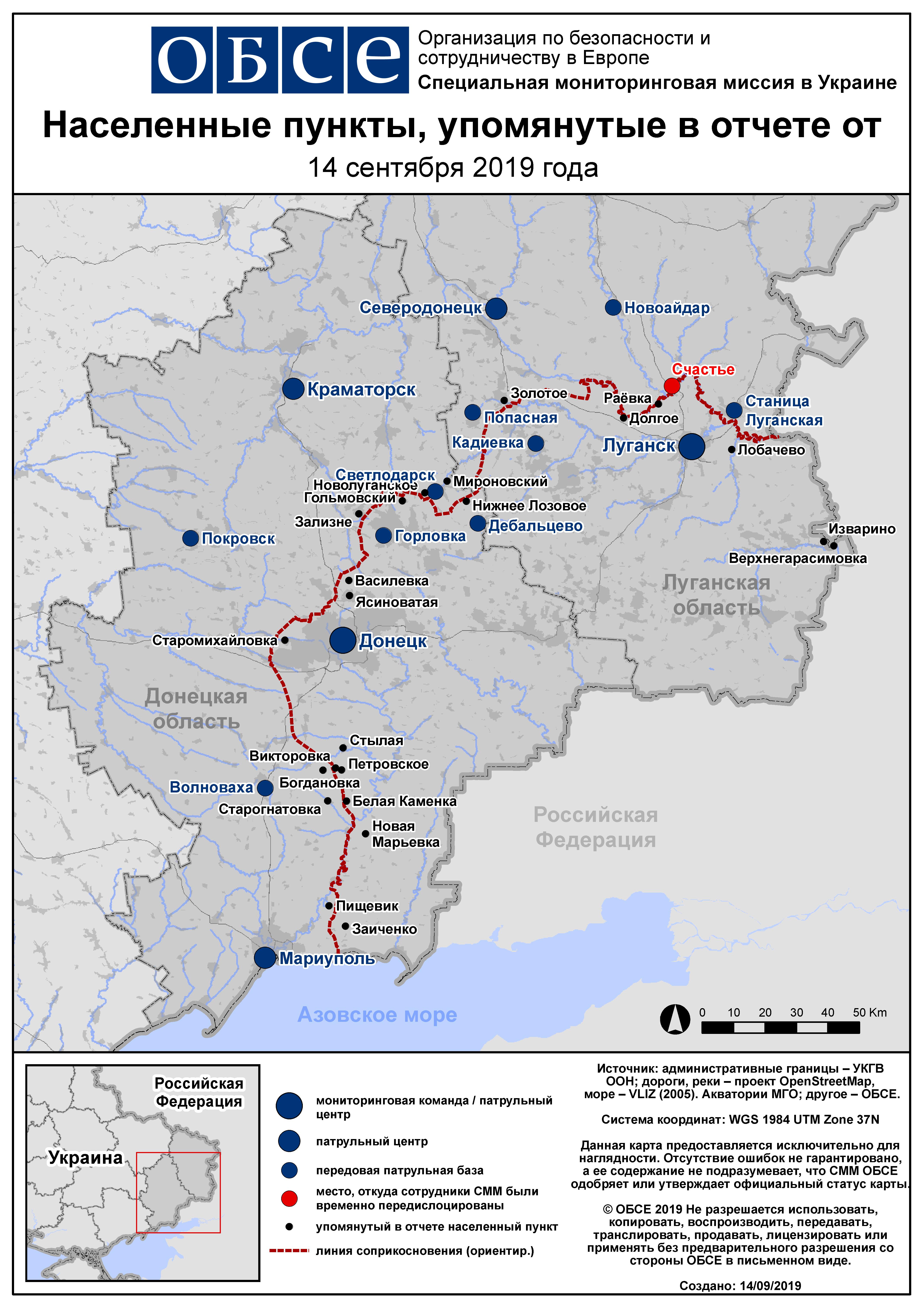 OSCE Special Monitoring Mission to Ukraine (SMM) Daily Report 218/2019 issued on 14 September 2019
