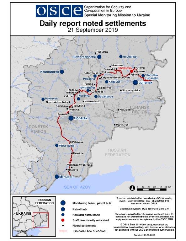 OSCE Special Monitoring Mission to Ukraine (SMM) Daily Report 224/2019 issued on 21 September 2019