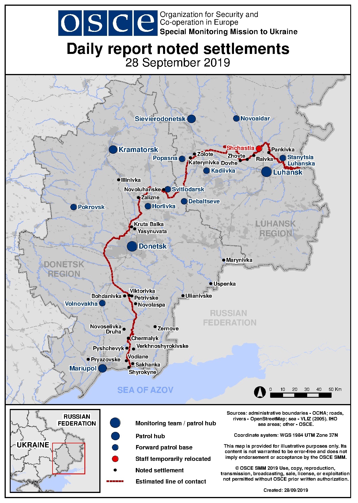 OSCE Special Monitoring Mission to Ukraine (SMM) Daily Report 230/2019 issued on 28 September 2019