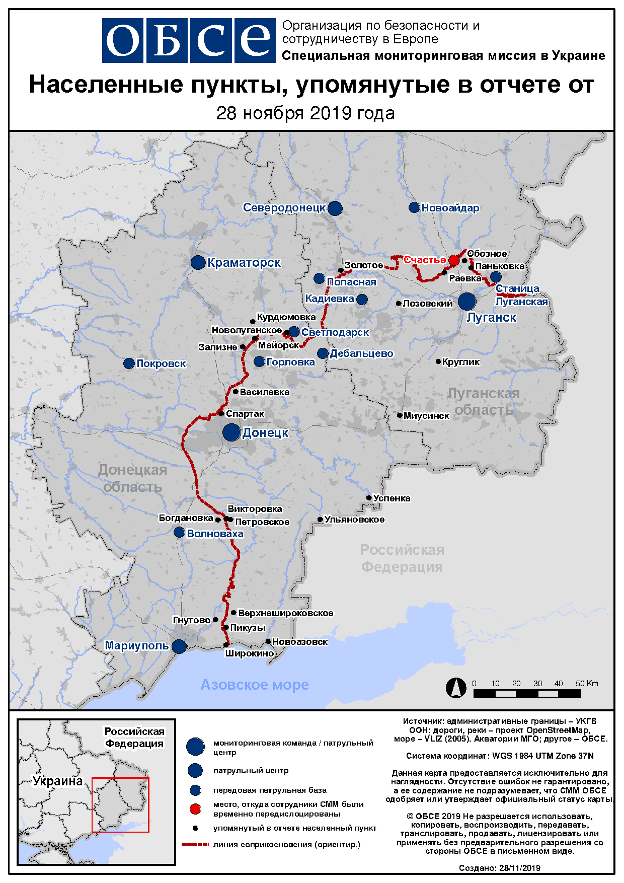 OSCE Special Monitoring Mission to Ukraine (SMM) Daily Report 282/2019 issued on 28 November 2019