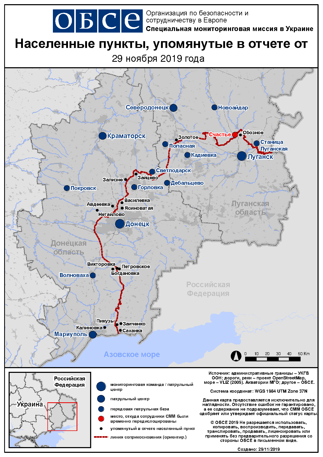 OSCE Special Monitoring Mission to Ukraine (SMM) Daily Report 283/2019 issued on 29 November 2019