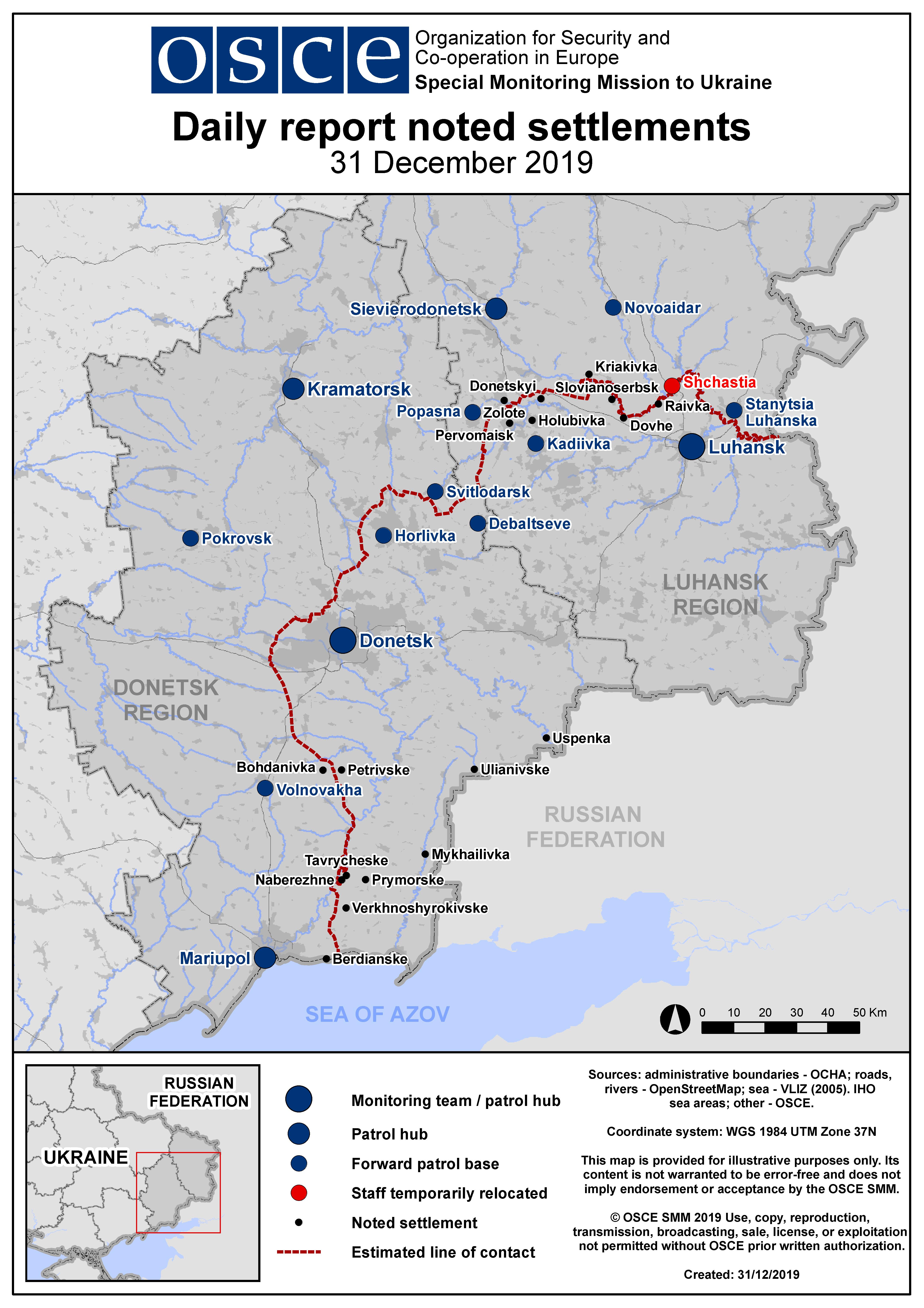 OSCE Special Monitoring Mission to Ukraine (SMM) Daily Report 308/2019 issued on 31 December 2019