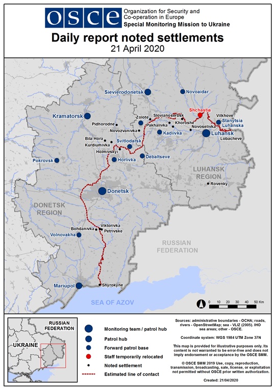 OSCE Special Monitoring Mission to Ukraine (SMM) Daily Report 94/2020 issued on 21 April 2020