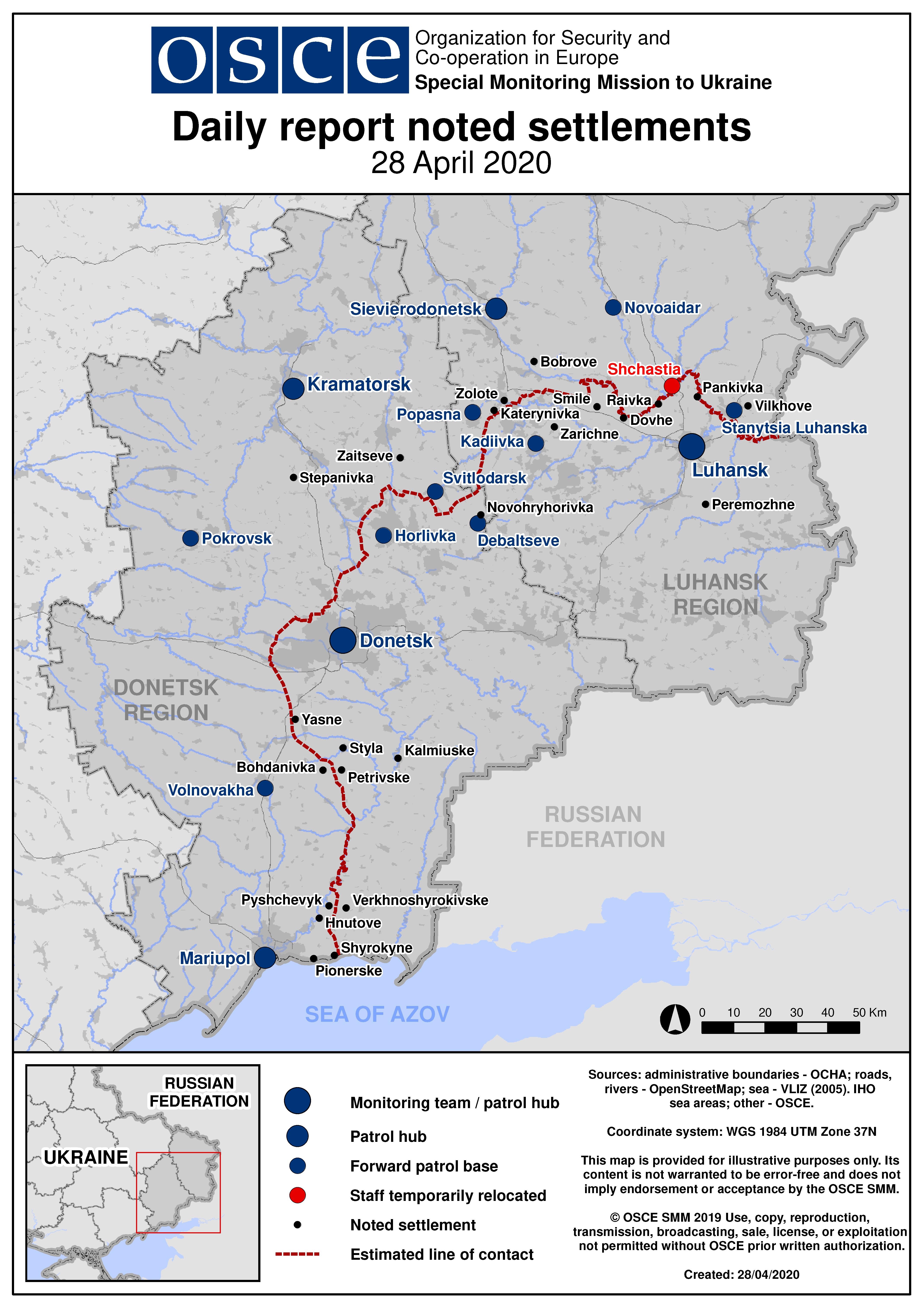 OSCE Special Monitoring Mission to Ukraine (SMM) Daily Report 100/2020 issued on 28 April 2020