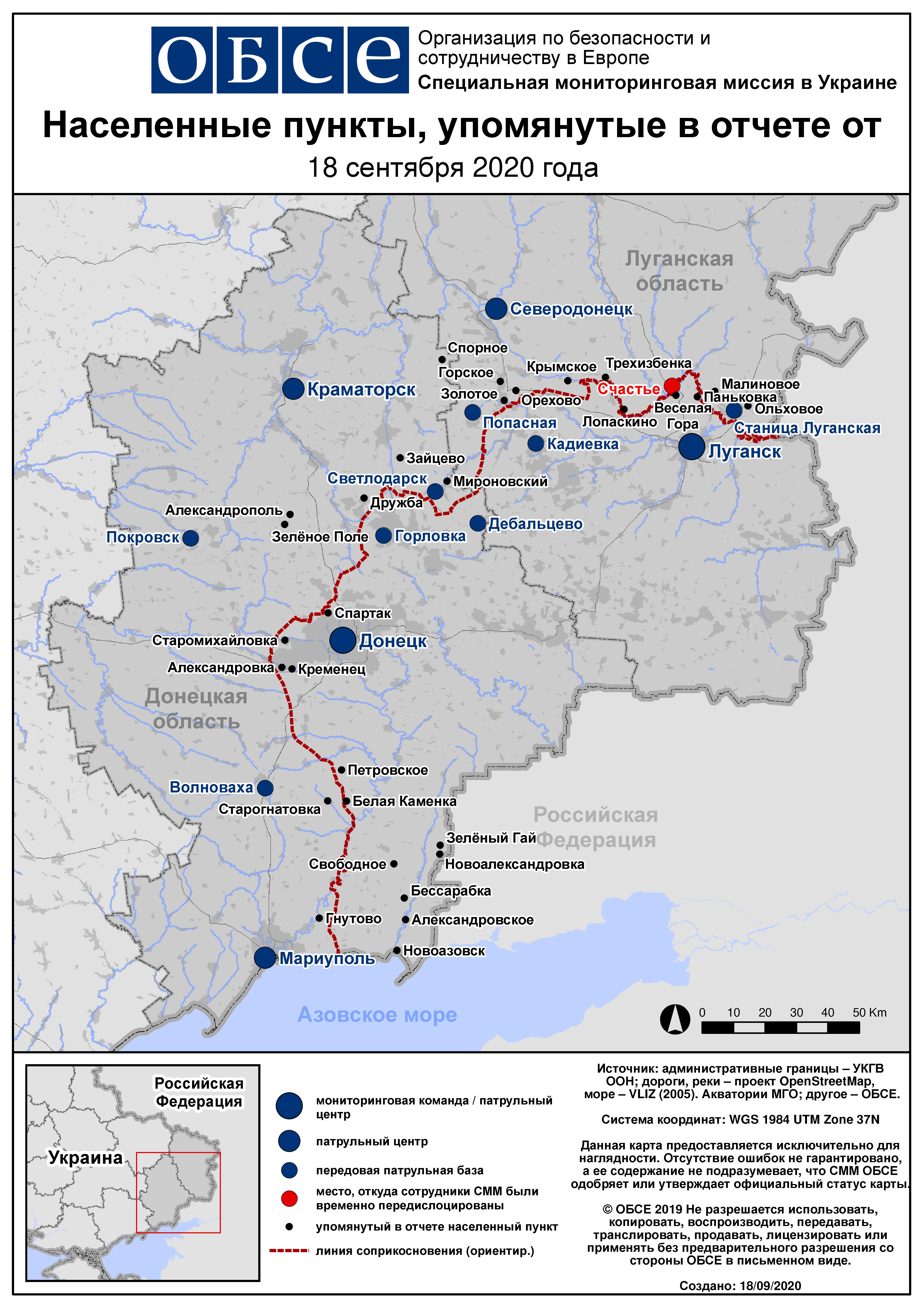 OSCE Special Monitoring Mission to Ukraine (SMM) Daily Report 223/2020 issued on 18 September 2020