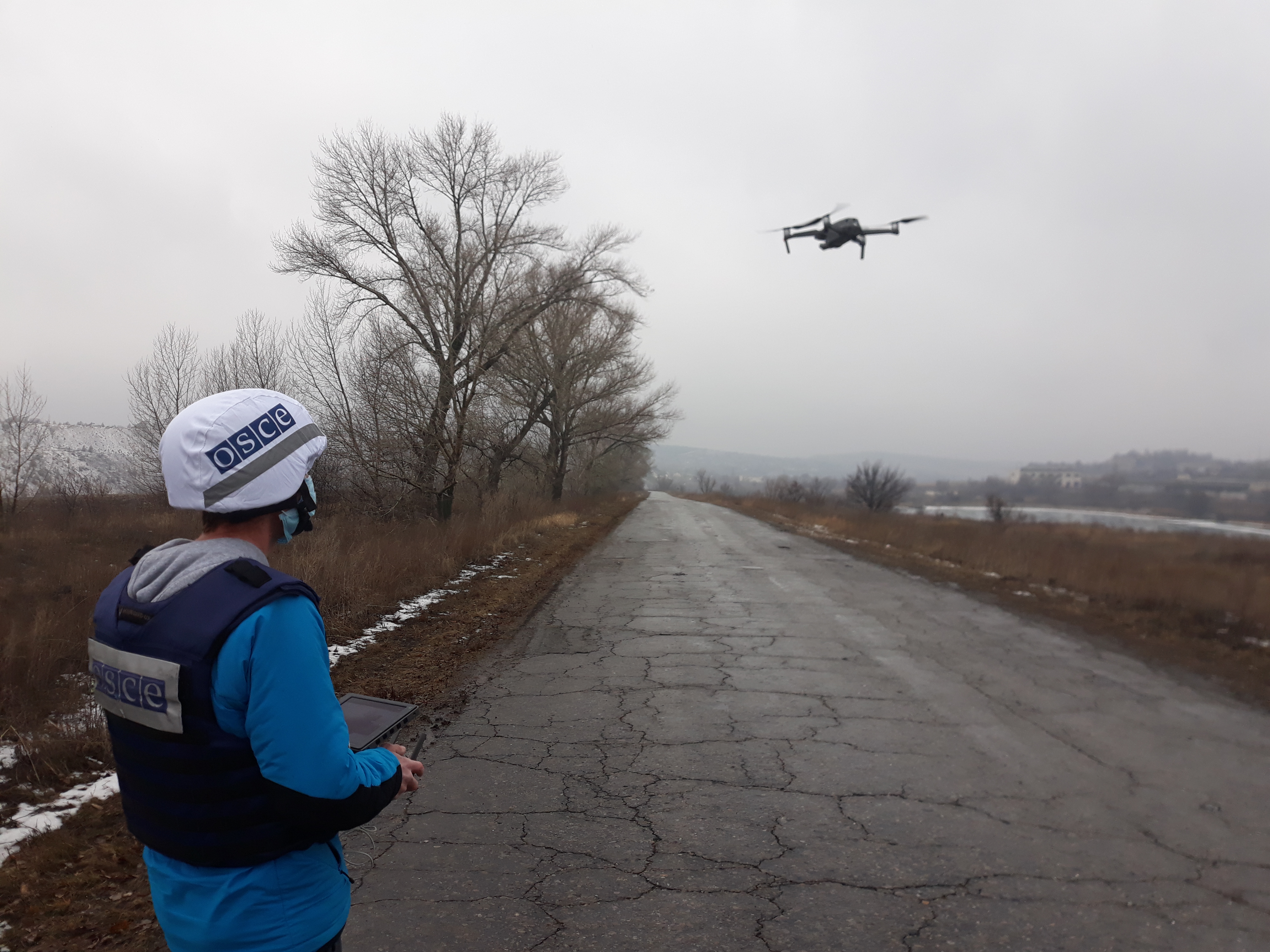 An SMM monitoring officer flying an unmanned aerial vehicles (UAV).