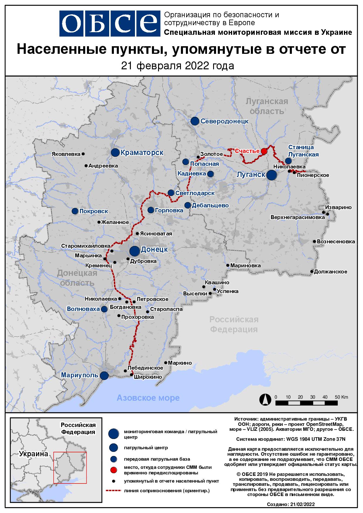 OSCE Special Monitoring Mission to Ukraine (SMM) Daily Report 40/2022 issued on 21 February 2022