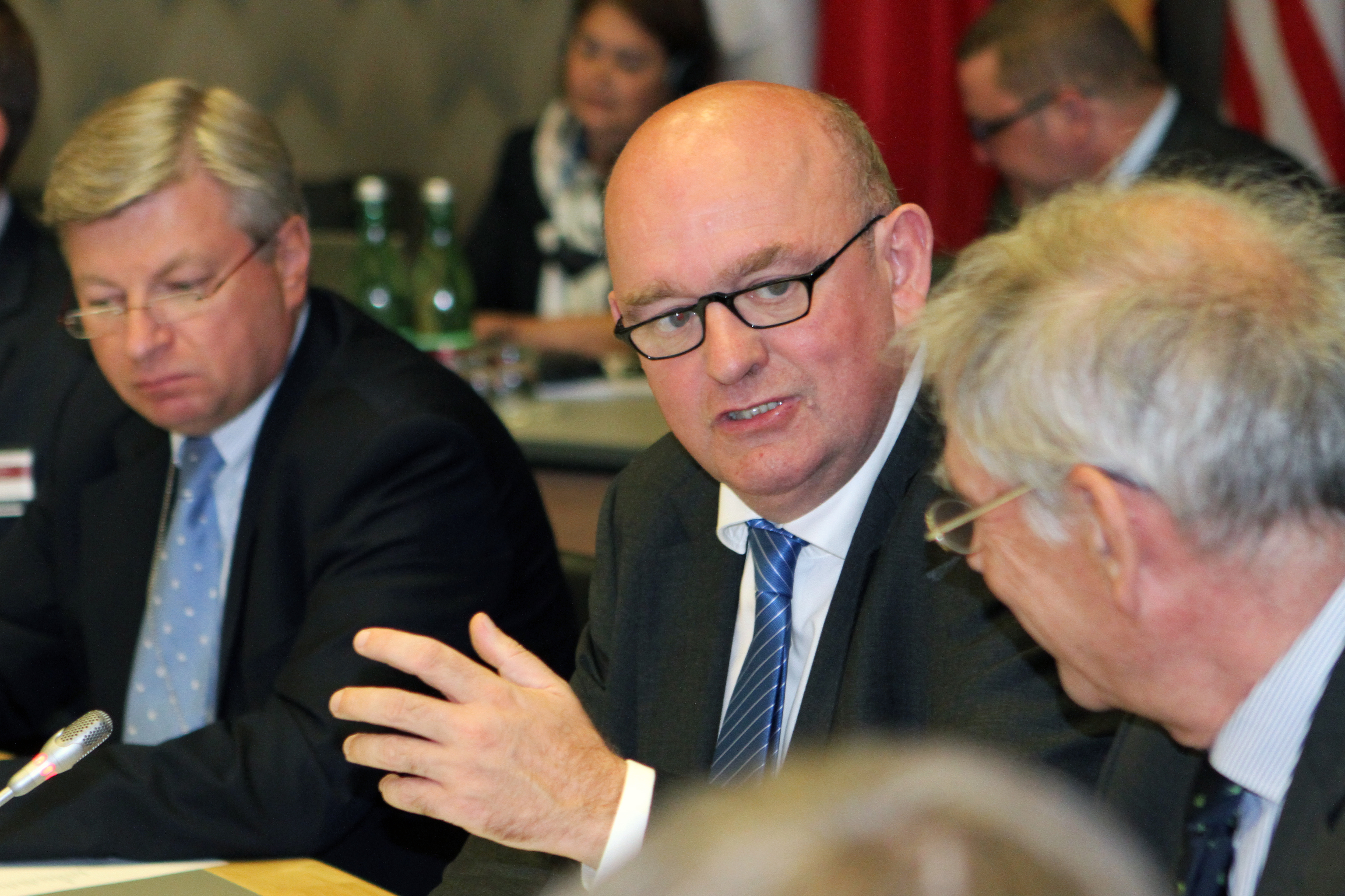 Alexey Lyzhenkov, OSCE Co-ordinator of Activities to Address Transnational Threats (l), Ambassador Eoin O’Leary, Chairperson of the OSCE Permanent Council (c), and Knut Dreyer, the Senior Police Adviser to the OSCE Secretary General (r), at the OSCE’s annual police experts meeting, Vienna, 20 September 2012.
