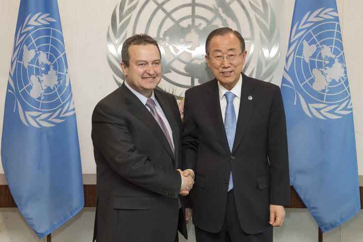 Generalni sekretar UN Ban Ki-mun (desno) sastaje se sa Ivicom Dačićem, prvim potpredsednikom Vlade Srbije i ministrom spoljnih poslova kao predsedavajućim OEBS-u.