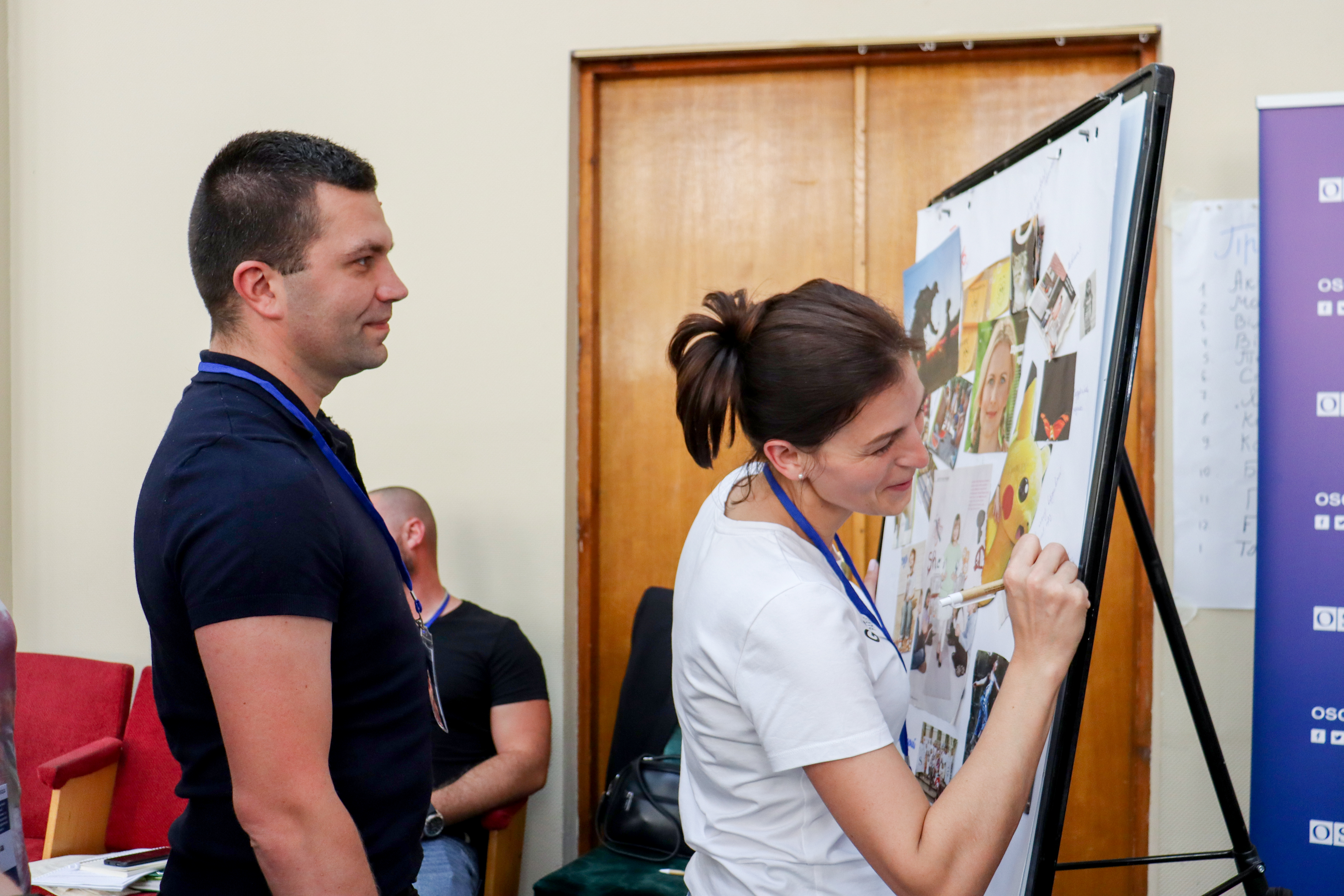 Operators of "102" emergency hotline are at a practical exercise to build skills of communicating with children at a training, organized by the OSCE in Uzhhorod on 6-9 June 2023.