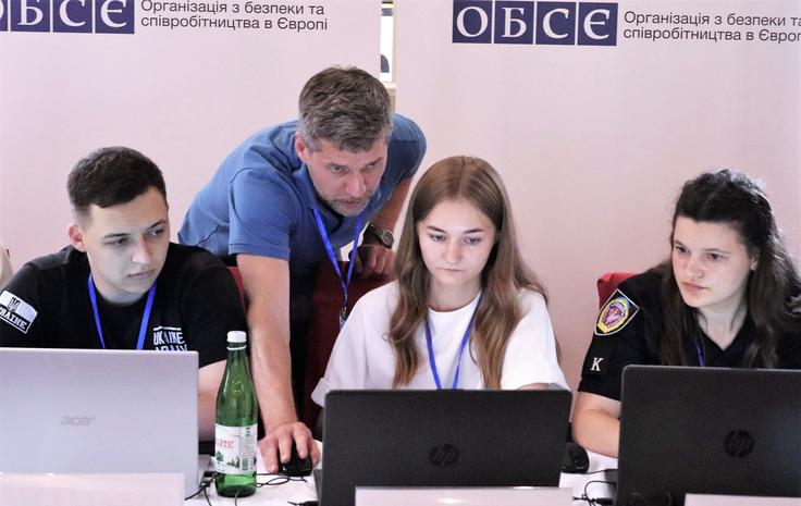 Students of Ministry of Interior universities upgrade cybersecurity skills during the training session organized by the OSCE Secretariat Extra-Budgetary Support Programme for Ukraine in Kamianets-Podilskiy, Khmelnytska Oblast. 6 July 2023.