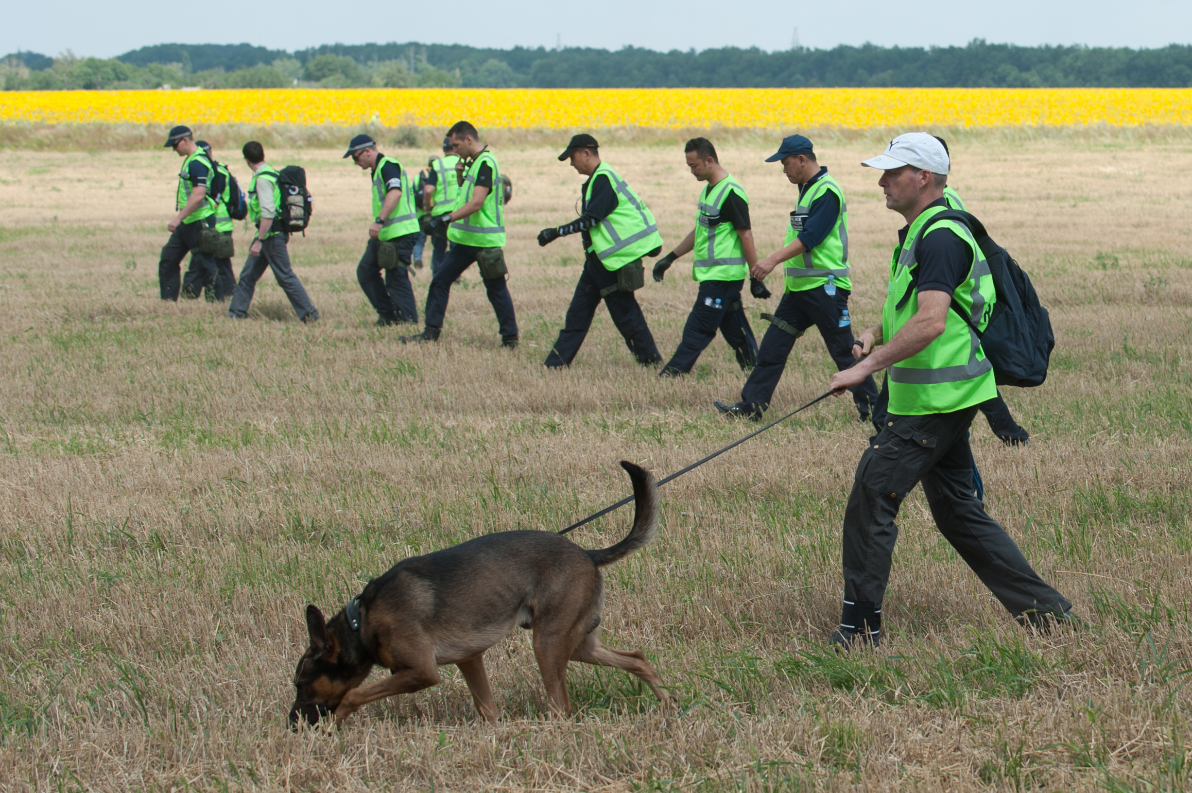 Міжнародні експерти використовують службових собак на місці падіння МН17, 5 серпня 2014 року.