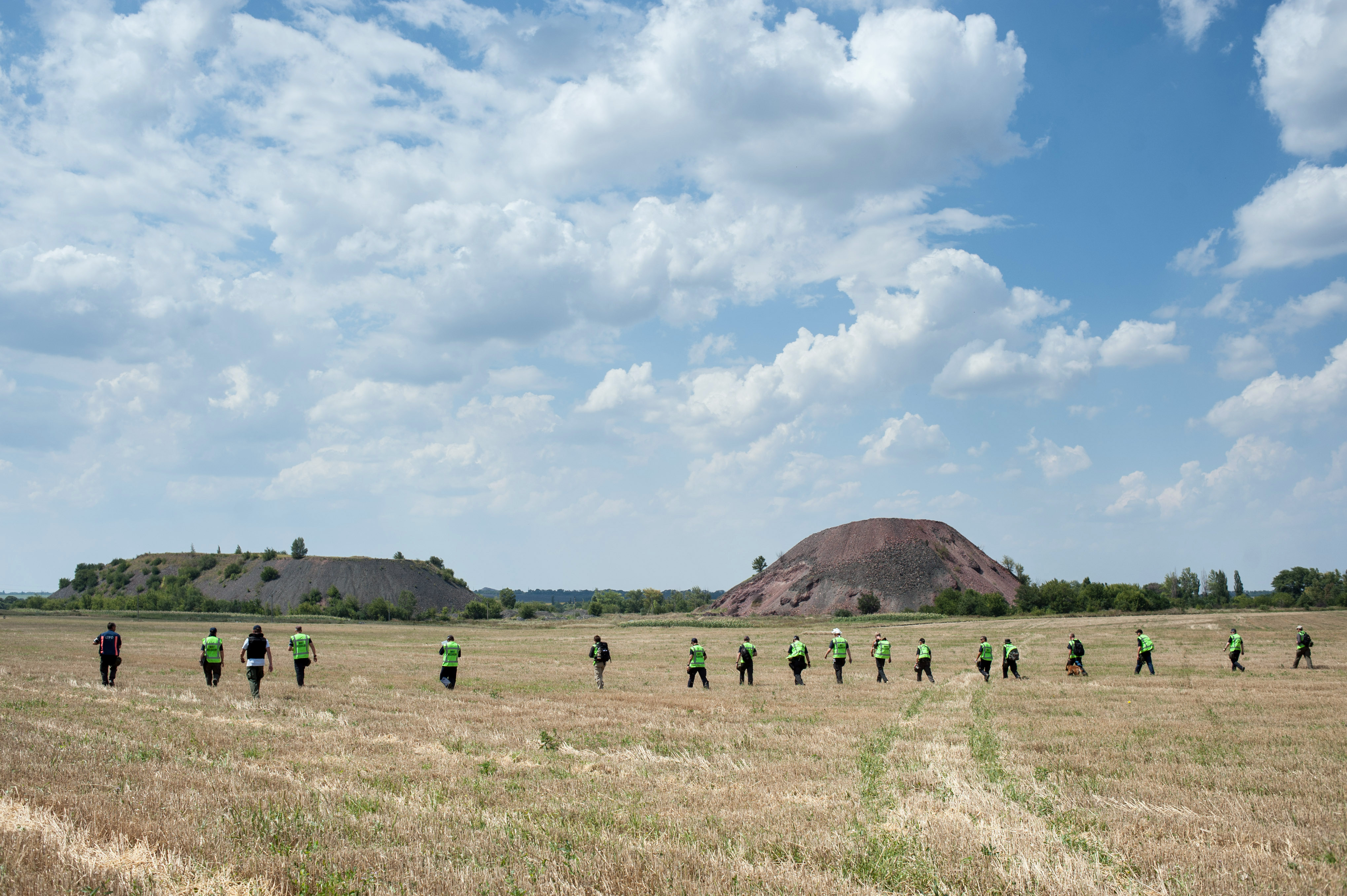 Міжнародні експерти розійшлися по полю на місці падіння МН17, 5 серпня 2014 року.