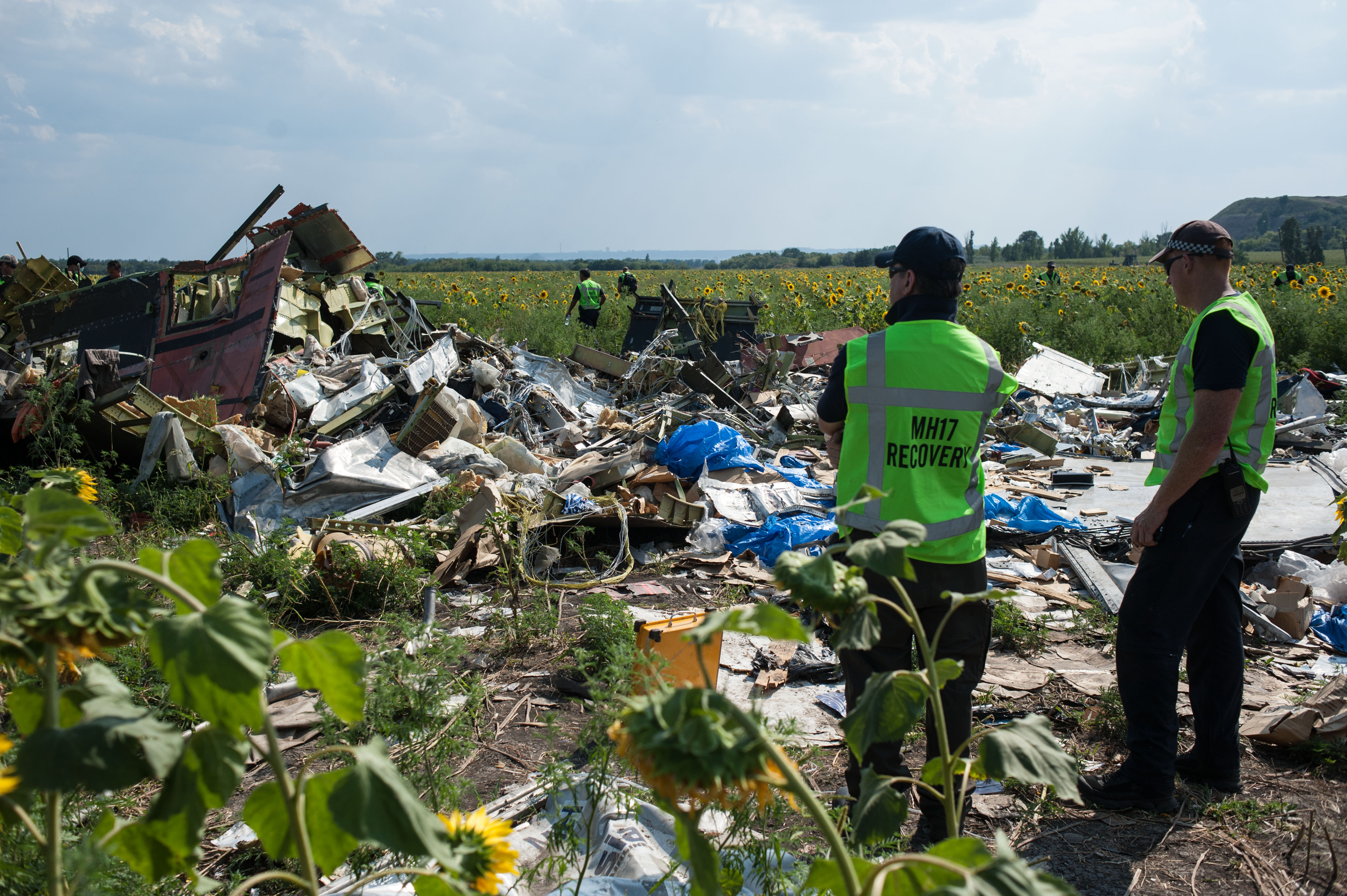 Міжнародні експерти оглядають місце падіння МН17, 5 серпня 2014 року.