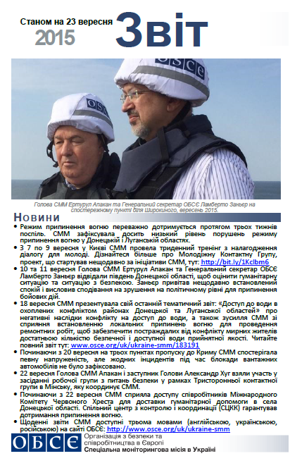 Обкладинка для Звіту про роботу станом на 23 вересня 2015 р.