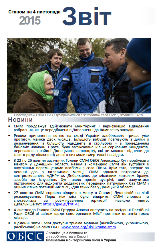 Обкладинка для Звіту про роботу станом на 4 листопада 2015ю