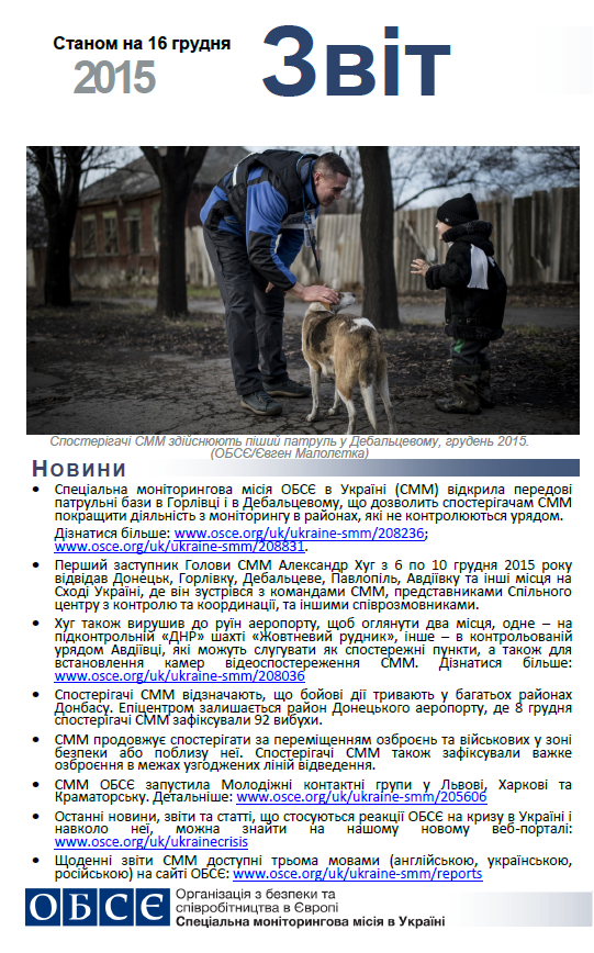 Обкладинка для звіту про роботу станом на 16 грудня 2015