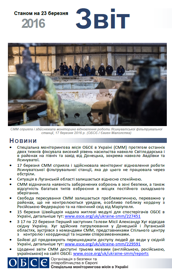 Обкладинка для Звіту про роботу станом на 23 березня 2016 року