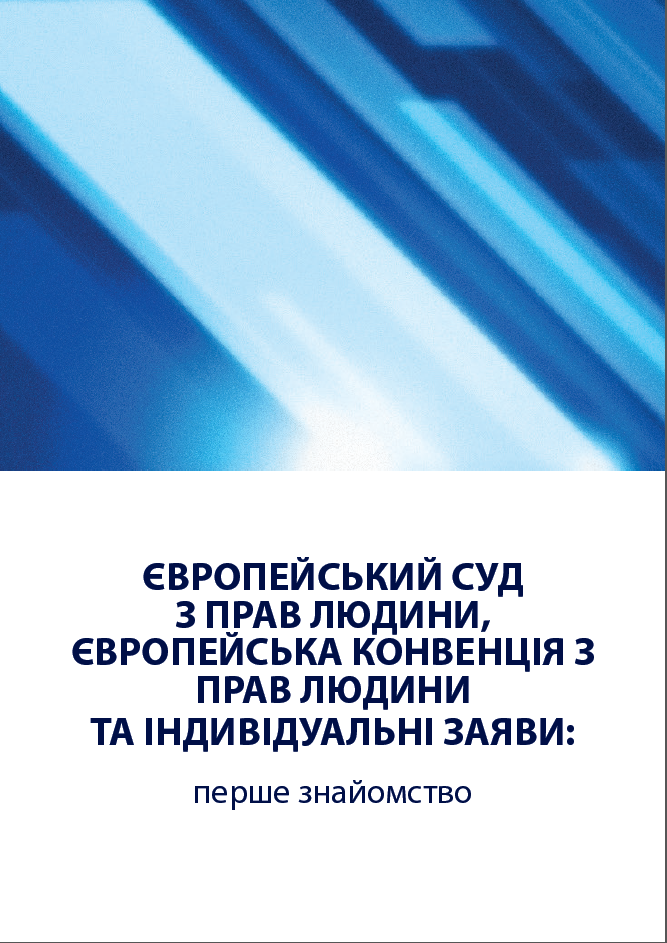 Обкладинка навчально-методичного посібника "Європейський суд з прав людини, Європейська конвенція з прав людини та індивідуальні заяви: перше знайомство".