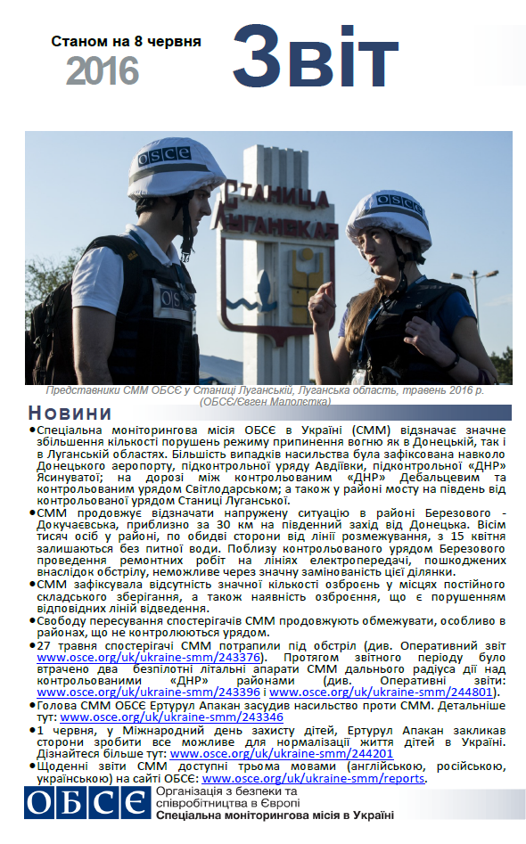 Обкладинка для Звіту про роботу станом на 8 червня 2016