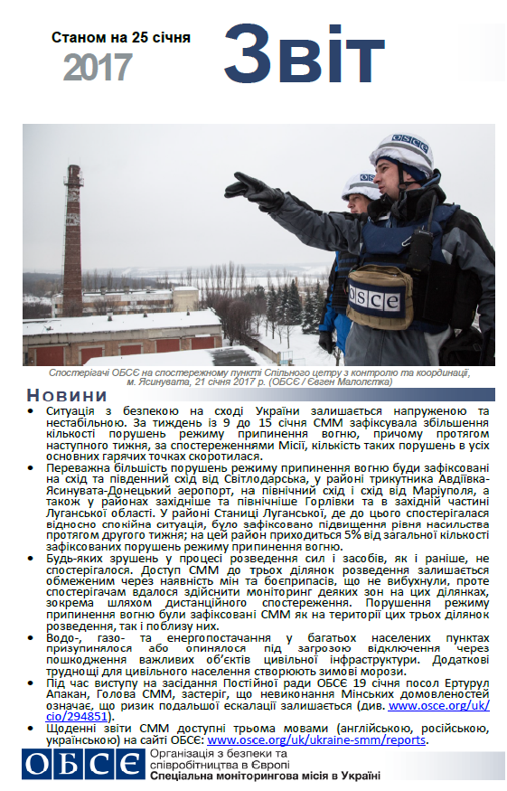 Обкладинка для Звіту про роботу станом на 25 січня 2017