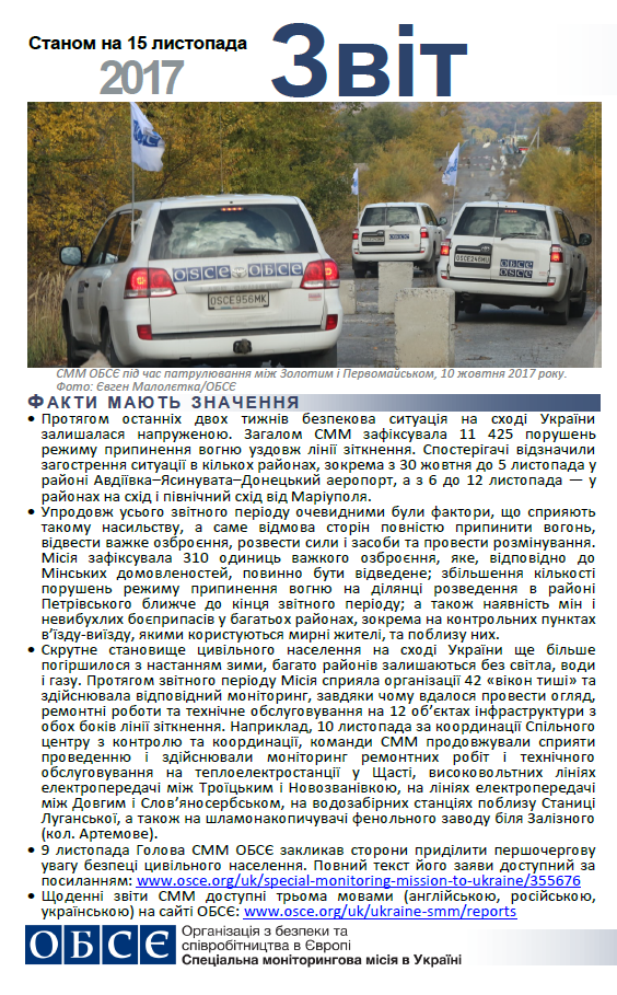 Обкладинка для Звіту про роботу станом на 15 листопада 2017