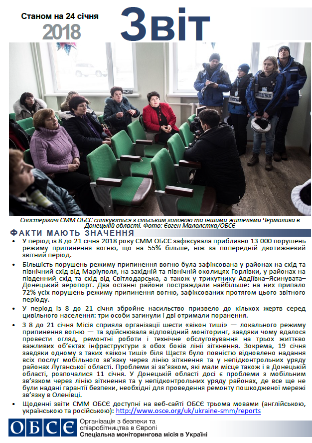 Цей звіт містить загальний огляд діяльності Спеціальної моніторингової місії в Україні, останні новини та події станом на 24 січня 2018 року.