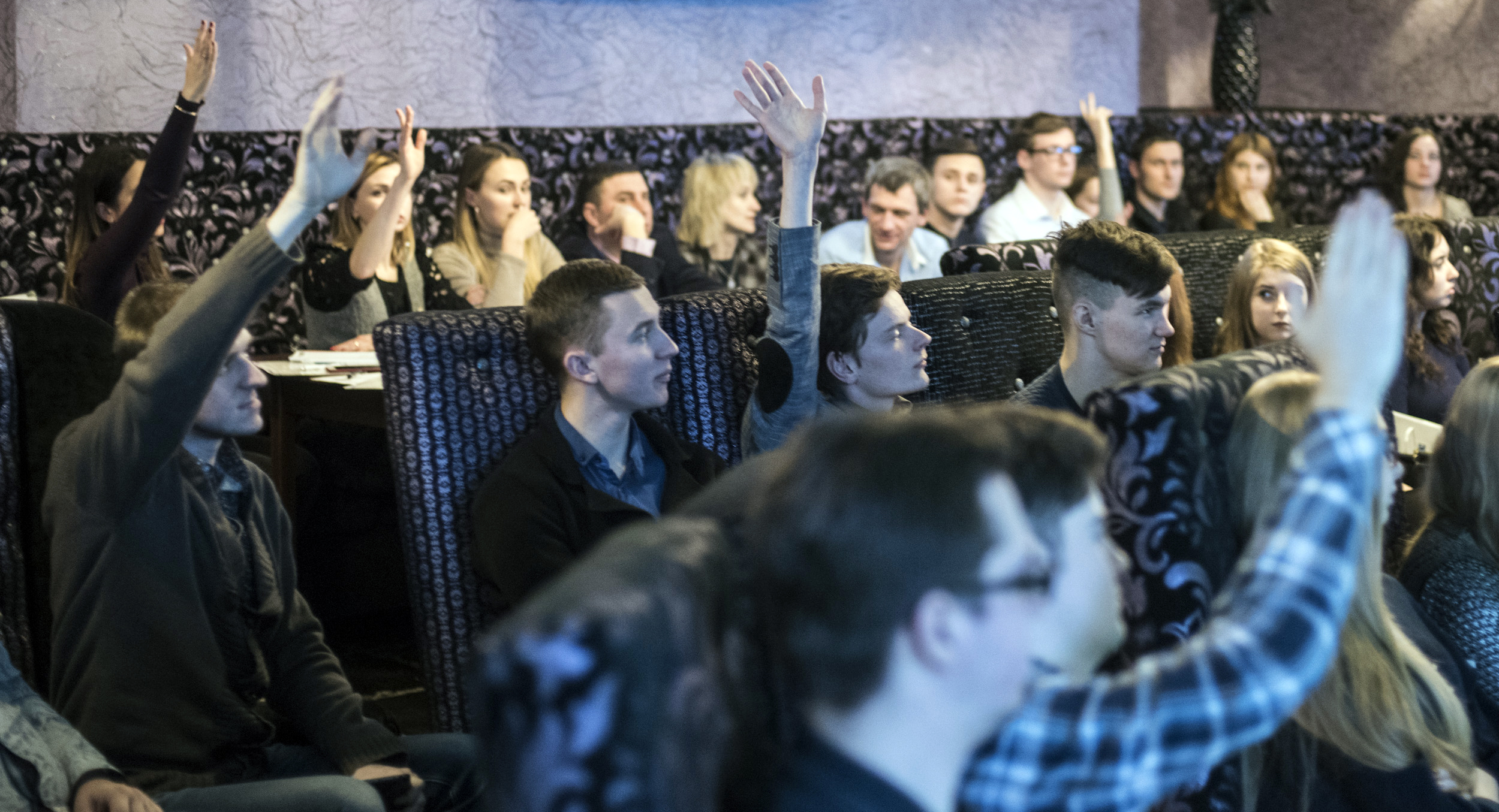Студенти беруть участь у вікторині під час ОБСЄ Café у Луганську, 16 лютого 2018 року.