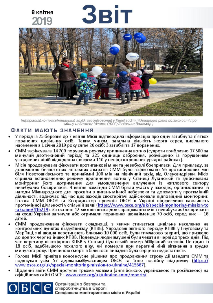 Звіт про роботу місії станом на 8 квітня 2019 року