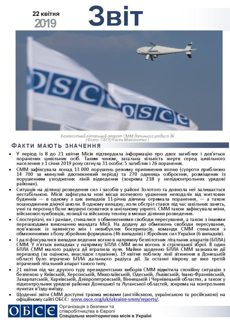 Звіт про роботу місії станом на 22 квітня 2019 року
