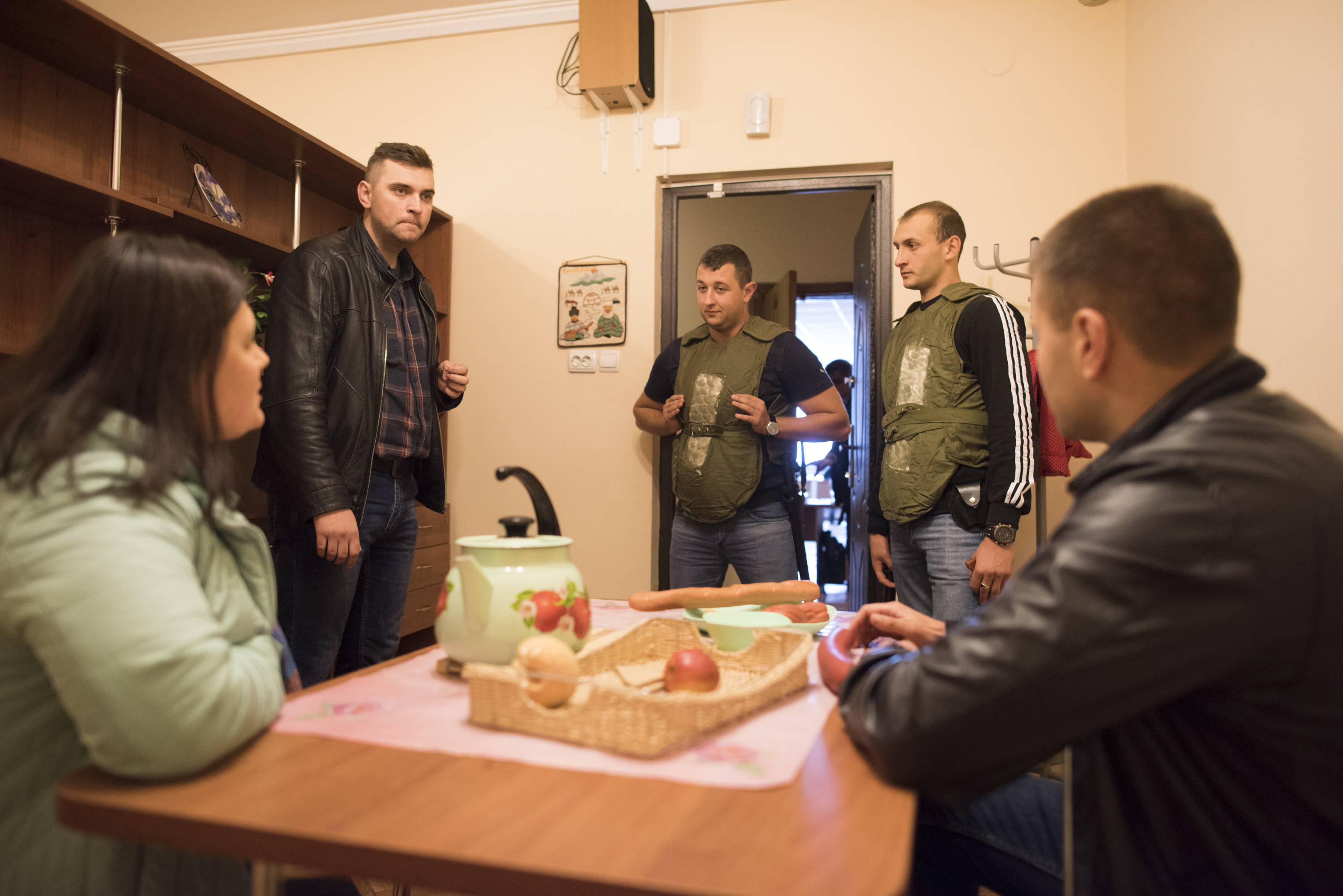 Співробітники Національної поліції України проходять тренінг з реагування на випадки домашнього насильства в інтерактивній навчальній кімнаті, оснащеній за підтримки Координатора проектів ОБСЄ в Україні. м. Дніпро, 17 жовтня 2018 року