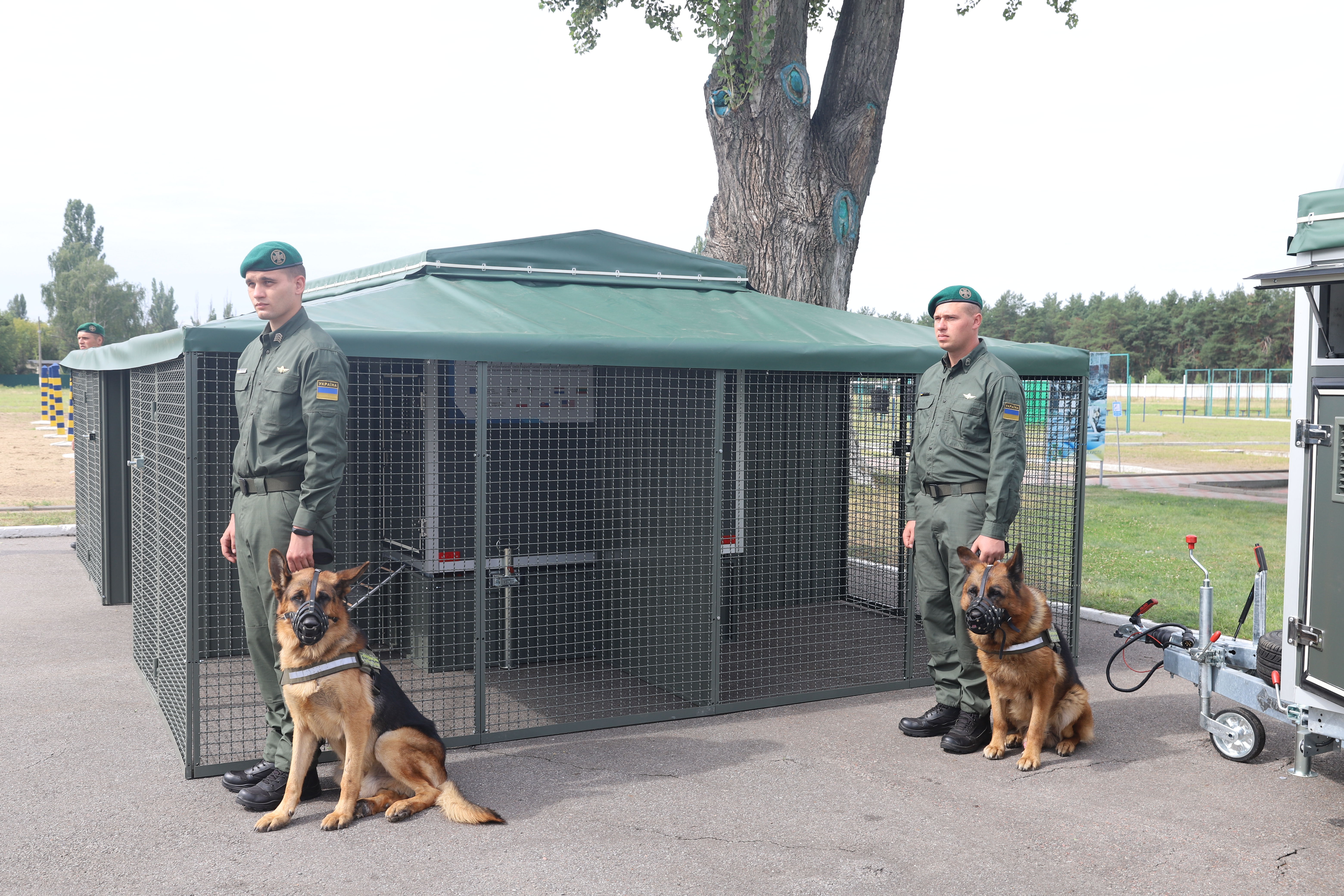 Кінологічні підрозділи Держприкордонслужби отримали від ОБСЄ кінологічні причепи з похідними вольєрами, а також тактичні шлеї для службових собак, Київ, 19 серпня 2021 року