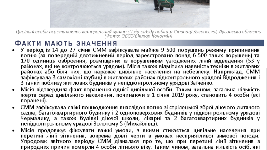 Цей звіт містить загальний огляд діяльності Спеціальної моніторингової місії в Україні, останні новини та події станом на 28 січня 2019 року.